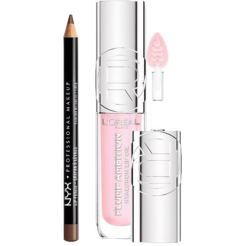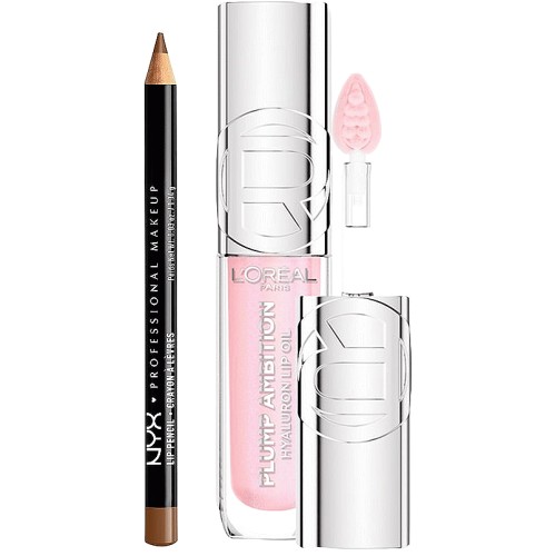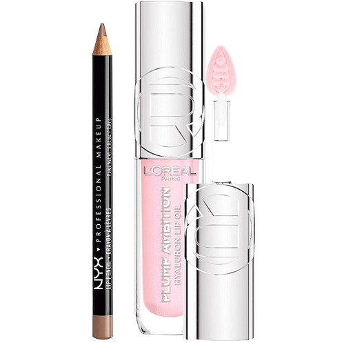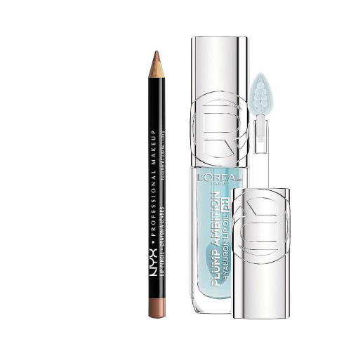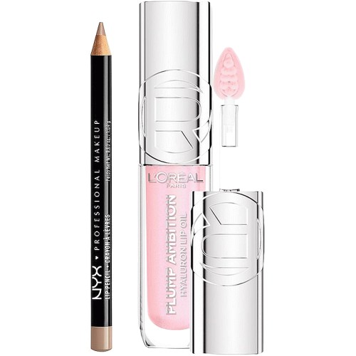 NYX Slim Lip Liner Pencil Natural & L'Oreal Paris Plump Ambition Lip Oil PH Cristal Ice Duo