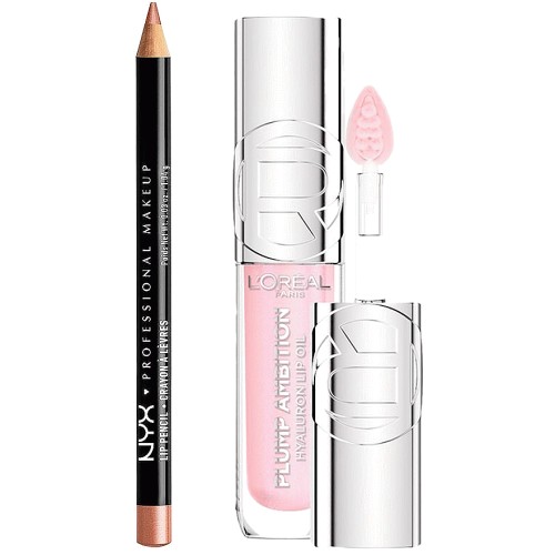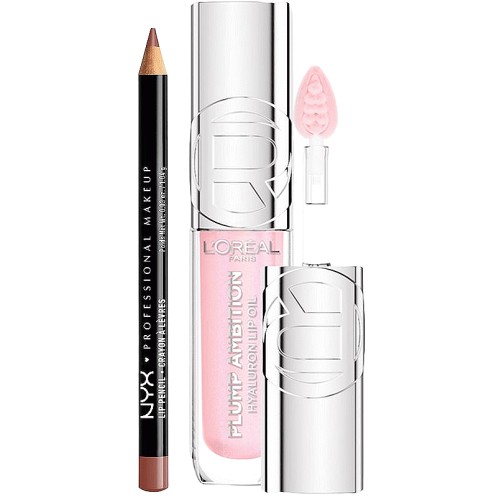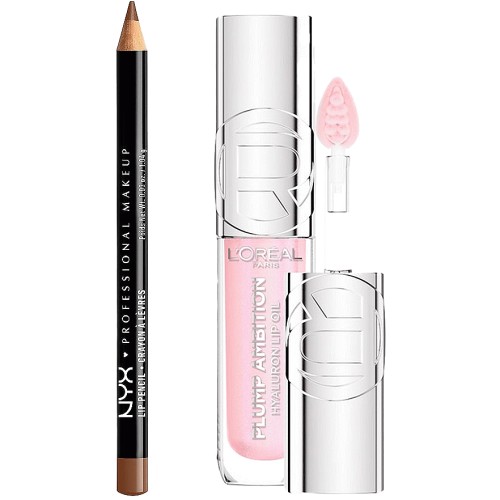 NYX Slim Lip Liner Pencil Peekaboo & L'Oreal Paris Plump Ambition Lip Oil PH Cristal Ice Duo