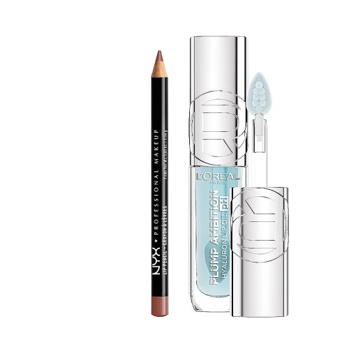 L'Oreal Paris Plump Ambition Lip Oil Cristal Clear 101 & NYX Slim Lip Liner Cocoa Duo