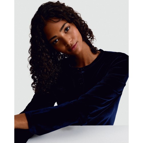 OH ME OH MY Velvet Cropped Button Up Cardigan in Navy