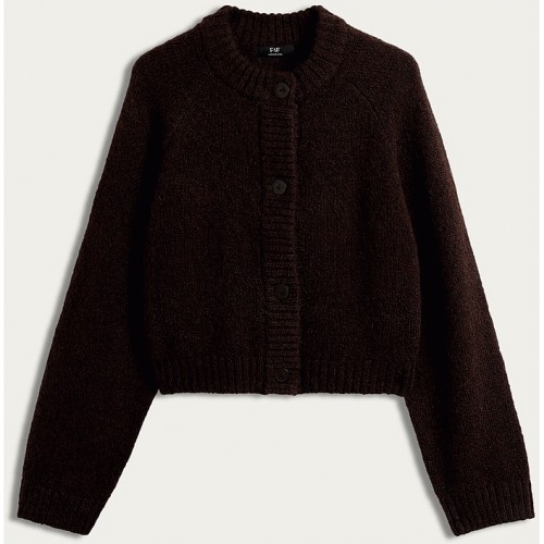 Textured Button Up Cropped Cardigan with Wool in Brown