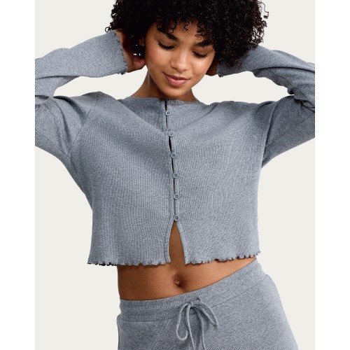 OH ME OH MY Cotton Rich Ribbed Stripe Print Co-ord Cardigan in Grey