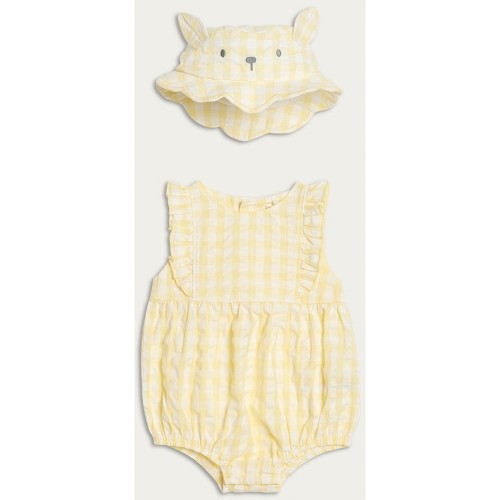 2-Piece Pure Cotton Gingham Romper with Hat in Yellow