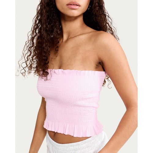 OH ME OH MY Cotton Rich Shirred Bandeau Top in Pink
