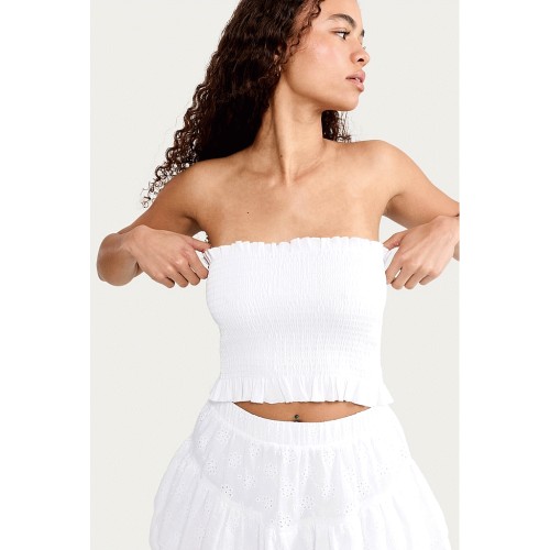 OH ME OH MY Cotton Rich Shirred Bandeau Top in White