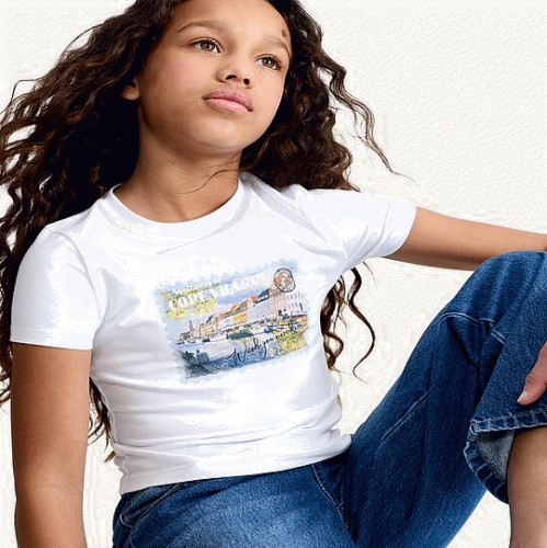 F&F Girls Cotton Rich Copenhagen Postcard Print T-Shirt in White