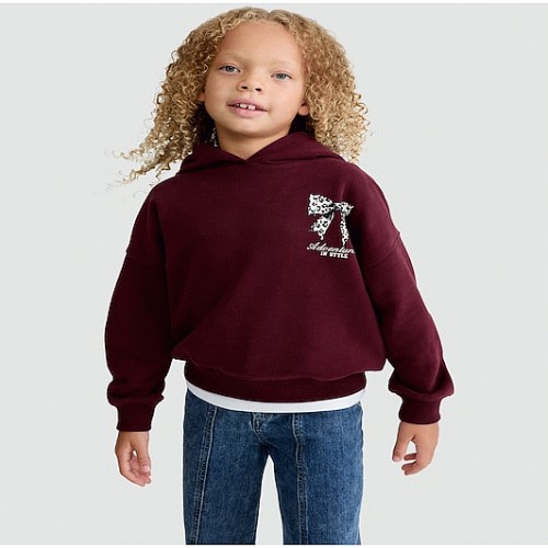 F&F Girls Cotton Rich Adventures in Style Slogan Hoodie in Burgundy