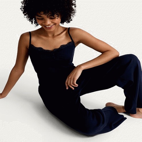 OH ME OH MY Cotton Rich Ribbed Button Detail Pyjama Bottoms in Navy