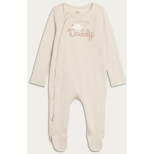 F&F Pure Cotton Rich I Love My Daddy Long Sleeved Sleepsuit in Neutral