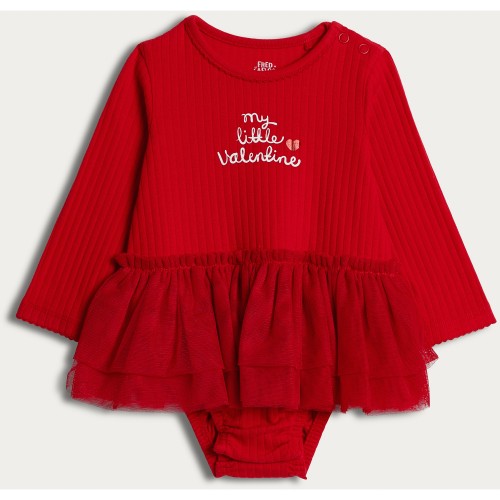 Cotton Rich Ribbed My Little Valentine Long Sleeved Bodysuit in Red