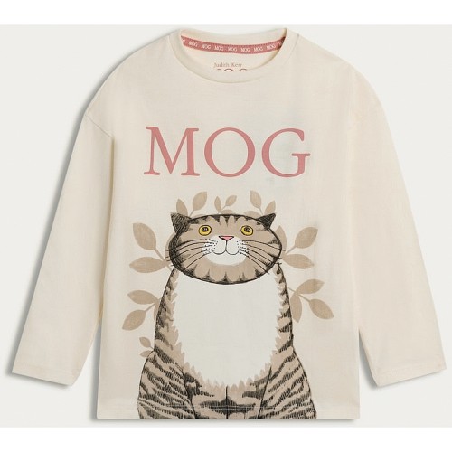 Judith Kerr Mog Pure Cotton Long Sleeved Top in Cream