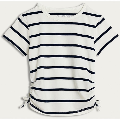 F&F Girls Cotton Rich Striped Ruched Side T-Shirt in Cream
