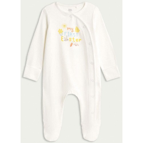 Cotton Rich My First Easter Long Sleeved Sleepsuit in White