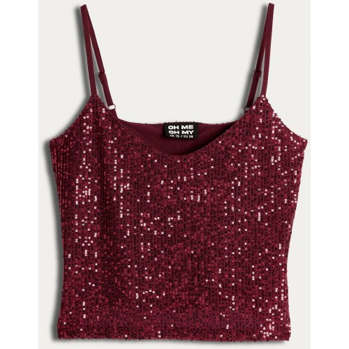 OH ME OH MY Sequin Embellished Cami Top in Burgundy