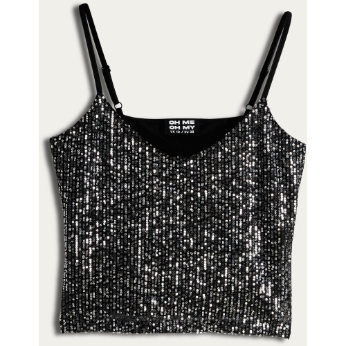 OH ME OH MY Sequin Embellished Cami Top in Black