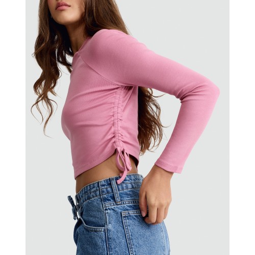 OH ME OH MY Cotton Rich Ruched Side Long Sleeved Top in Pink