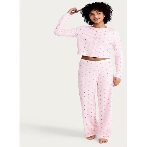 OH ME OH MY Ribbed Heart Bow Print Pyjama Bottoms in Pink