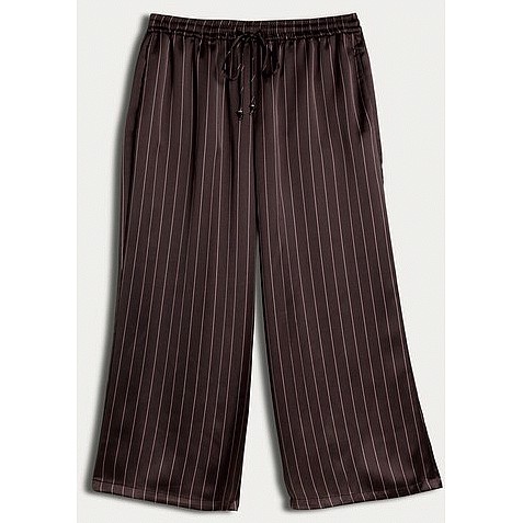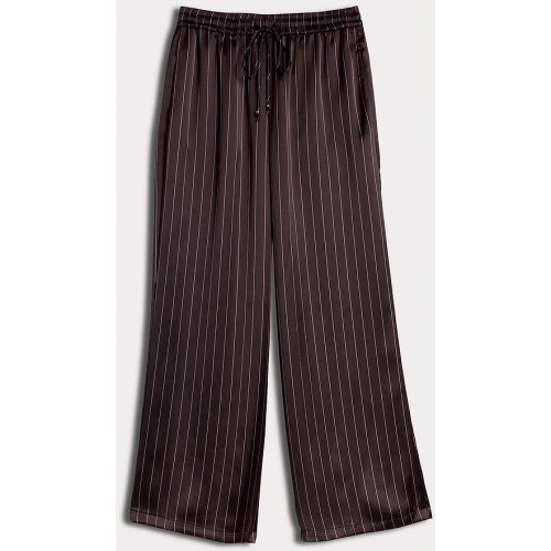 Satin Pinstripe Wide Leg Trousers in Chocolate