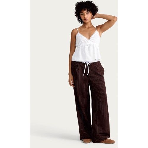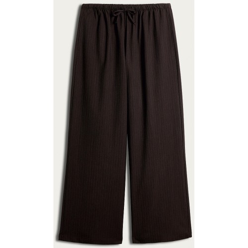 Pinstripe Wide Leg Drawstring Trousers in Chocolate