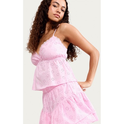 OH ME OH MY Pointelle Lace Trim Strappy Pyjama Vest in Blue