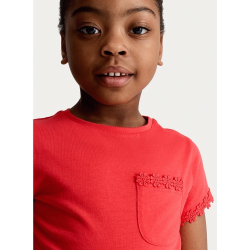 F&F Girls Pure Cotton Embroidered Trim T-Shirt in Red