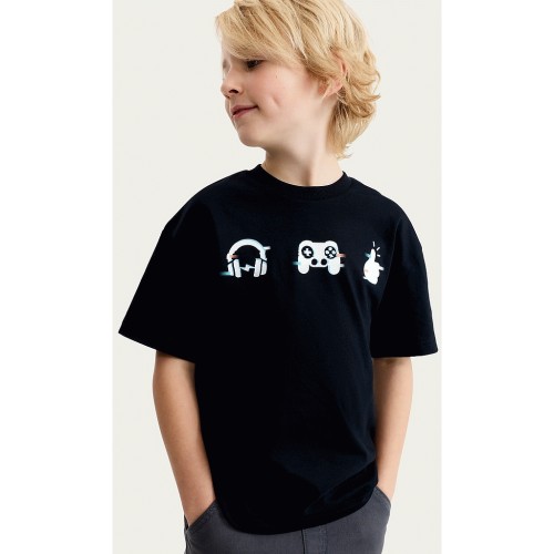 F&F Boys Pure Cotton Printed Oversized Fit T-Shirt in Black
