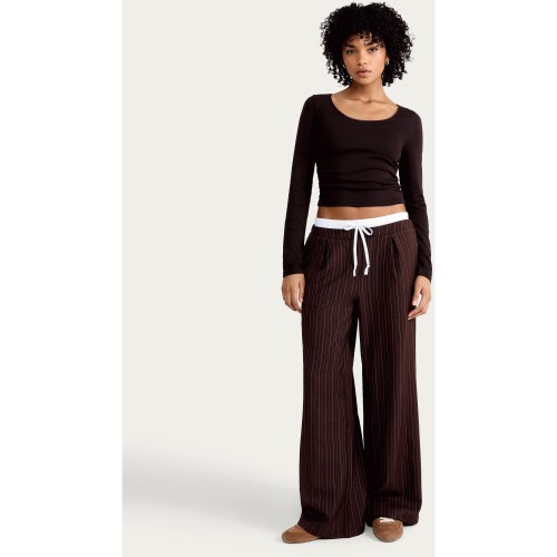 OH ME OH MY Cotton Rich Ruched Side Long Sleeved Top in Chocolate