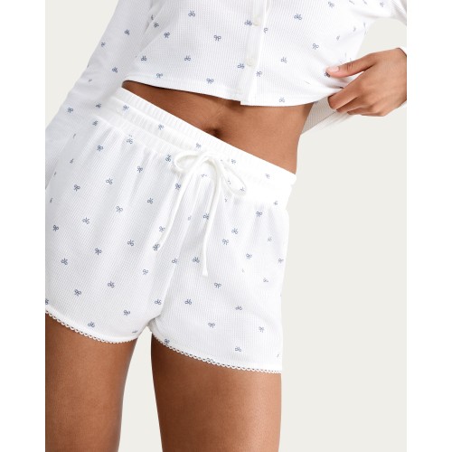 OH ME OH MY Ribbed Bow Print Pyjama Shorts in White