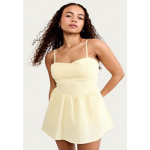OH ME OH MY Cotton Rich Gingham Strappy Mini Dress in Yellow
