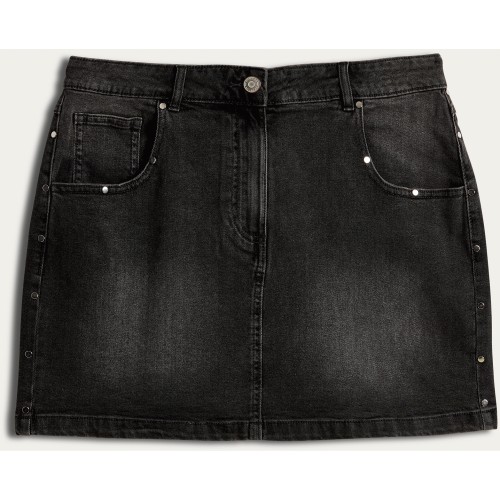 OH ME OH MY Cotton Rich Studded Denim Skirt in Black