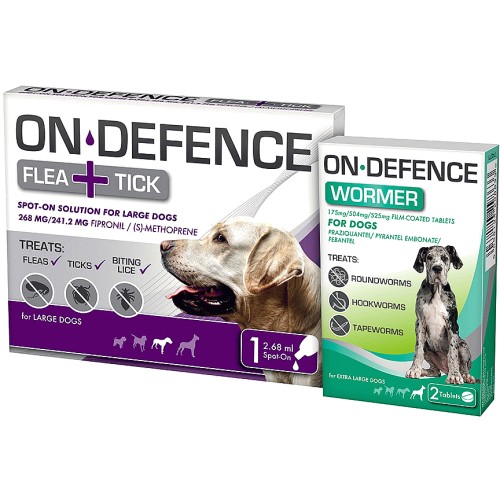 Bundle For Large Dogs (20.01Kg-35Kg) Wormer Tablet And On-Defence Flea And Tick Spot On Solution