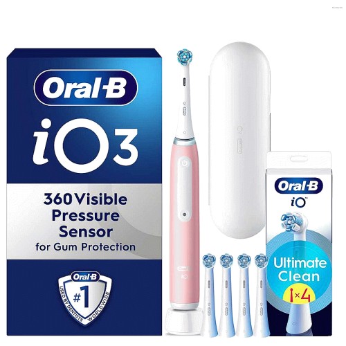 iO3 Blush Pink Electric Toothbrush + Travel Case & iO Ultimate Clean Toothbrush Heads Bundle