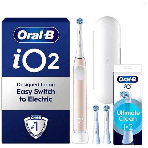 iO2 Calm Pink Electric Toothbrush + Travel Case & iO Ultimate Clean Toothbrush Heads Bundle