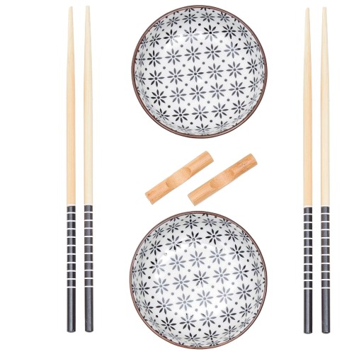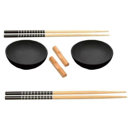 Jurado 6 Piece Black Ceramic And Bamboo Sushi Set