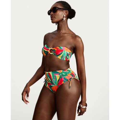 Textured Contrast Trim High Leg Bikini Bottoms in Blue