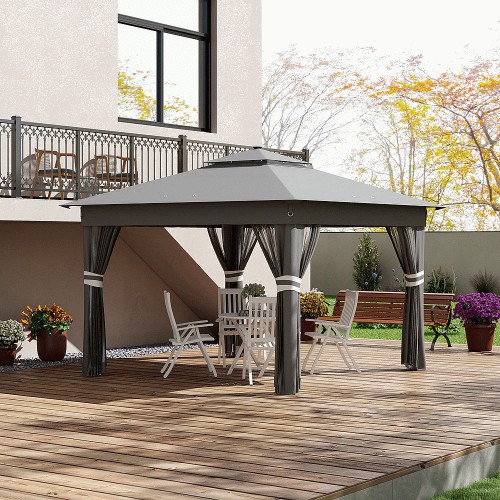 x Pop Up Gazebo with Solar-Powered LED Lights Netting Grey