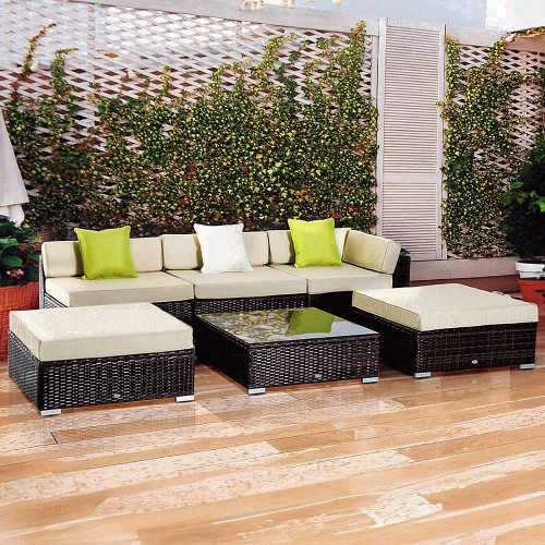 5 Seater Brown PE Rattan Sofa Lounge Set