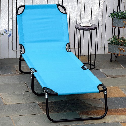 Set of 2 Blue Foldable Recliner Sun Lounger with Side Pocket