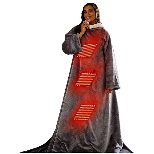 Snugsie Wearable Heated Throw Usb Powered Grey