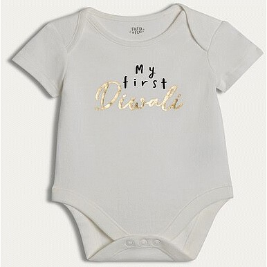 Pure Cotton My First Diwali Bodysuit in White
