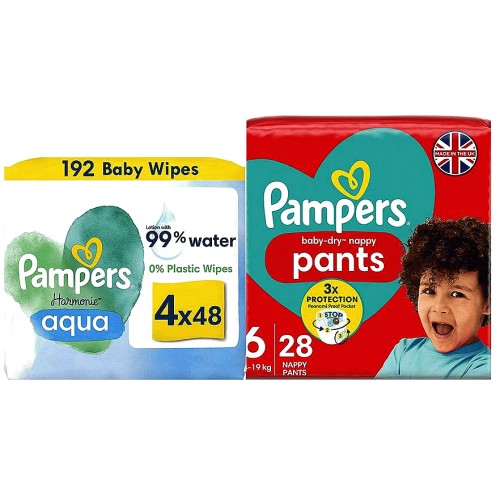 Baby Dry Pants Size 6 & Harmonie Aqua Wipes Bundle