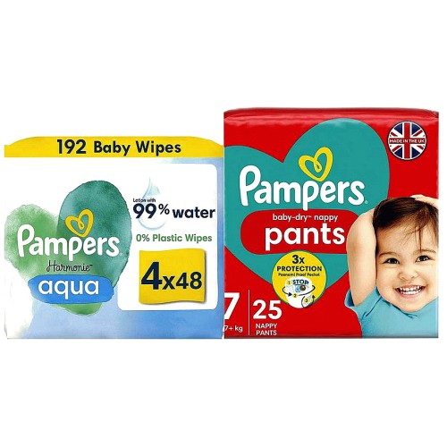 Baby Dry Pants Size 7 & Harmonie Aqua Wipes Bundle