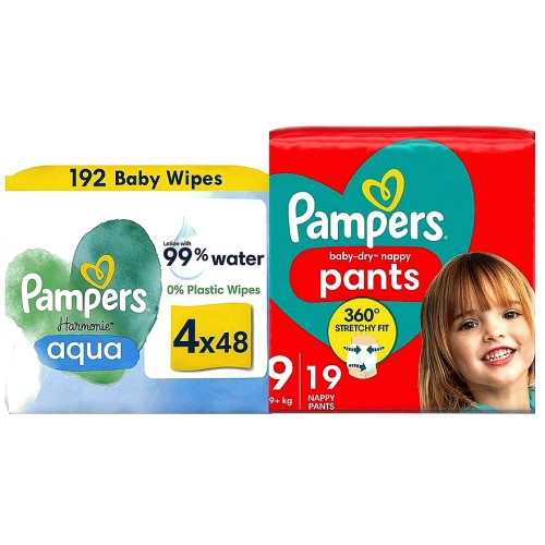 Baby Dry Pants Size 9 & Harmonie Aqua Wipes Bundle