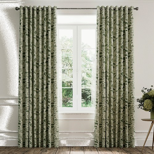 Ornamental Bloom Green Lined Blackout Pencil Pleat Curtains 229x183cm