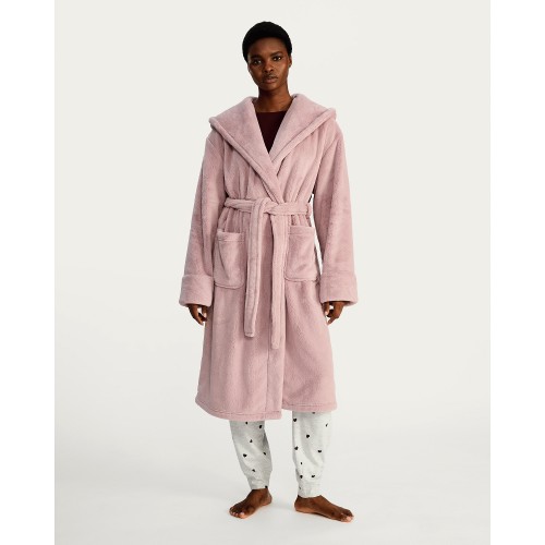 Girls Brushed Fleece Hooded Dressing Gown in Pink