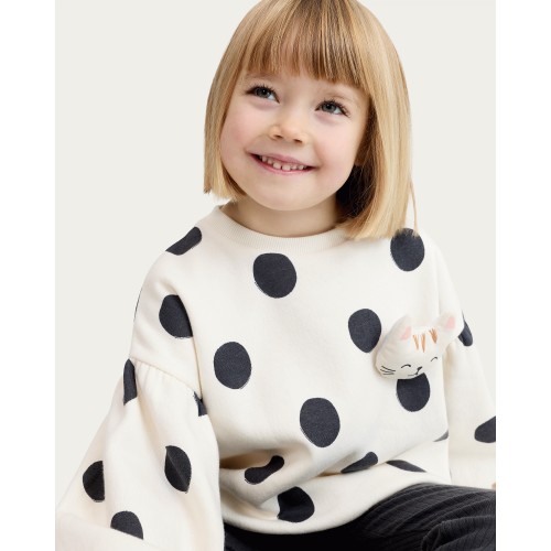 F&F Girls 2-Piece Cotton Rich Sweatshirt and Flared Leggings in Multi Black White