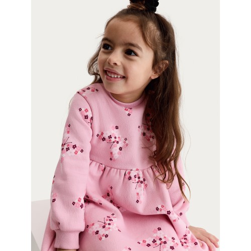 Cotton Rich Floral Print Sweat Dress in Blue