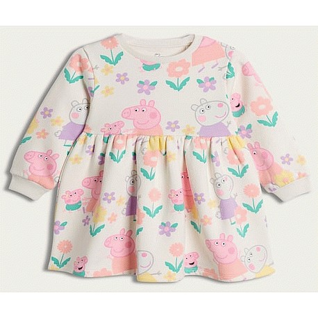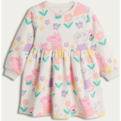 Peppa Pig Cotton Rich Long Sleeved Sweat Dress in Cream