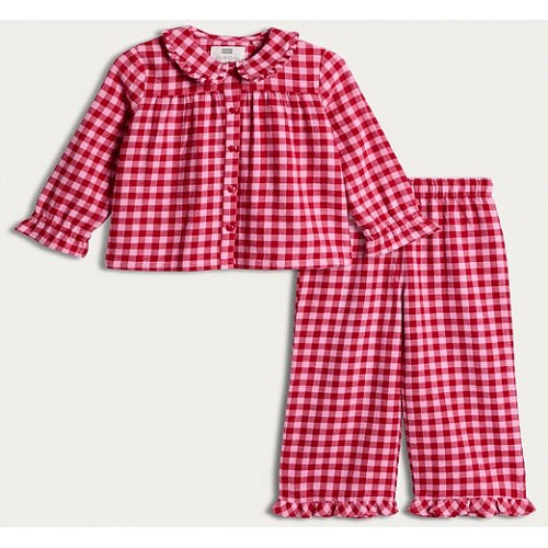Girls Pure Cotton Gingham Pyjama Set in Pink