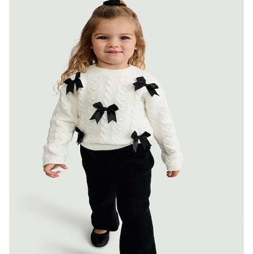 F&F Girls 2-Piece Cable Knit Jumper and Trousers Set in Multi Black White